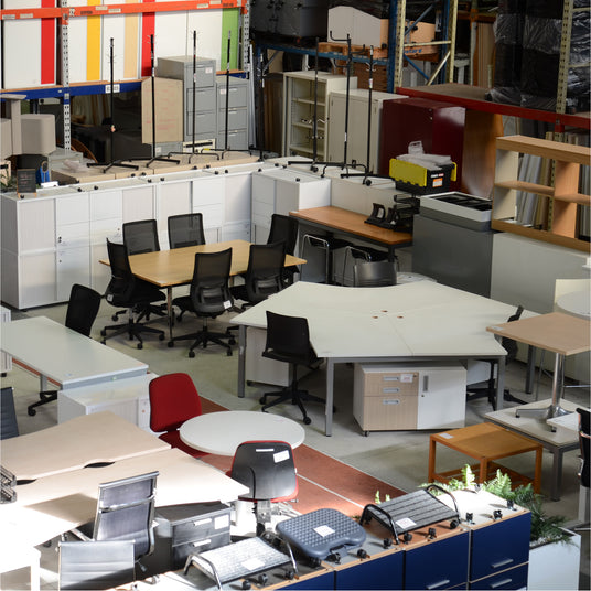 Need custom pieces for your team or meeting spaces? Our warehouse team can take your plans and repurpose existing furniture into bespoke items specifically designed for your office. This approach not only reduces your waste footprint but also positively impacts your budget.